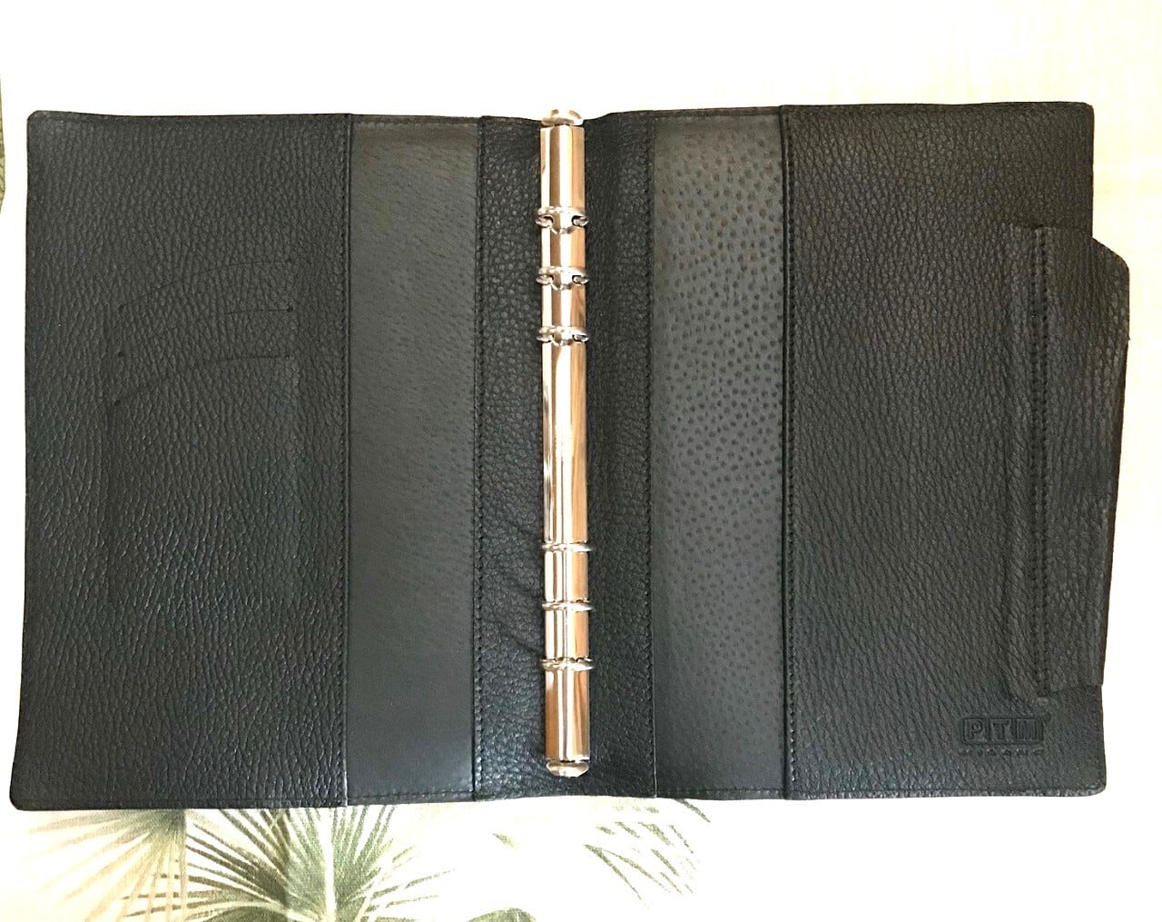 革の素材感が引き立つようにブラックのみの展開PTM唯一の鹿革システム手帳